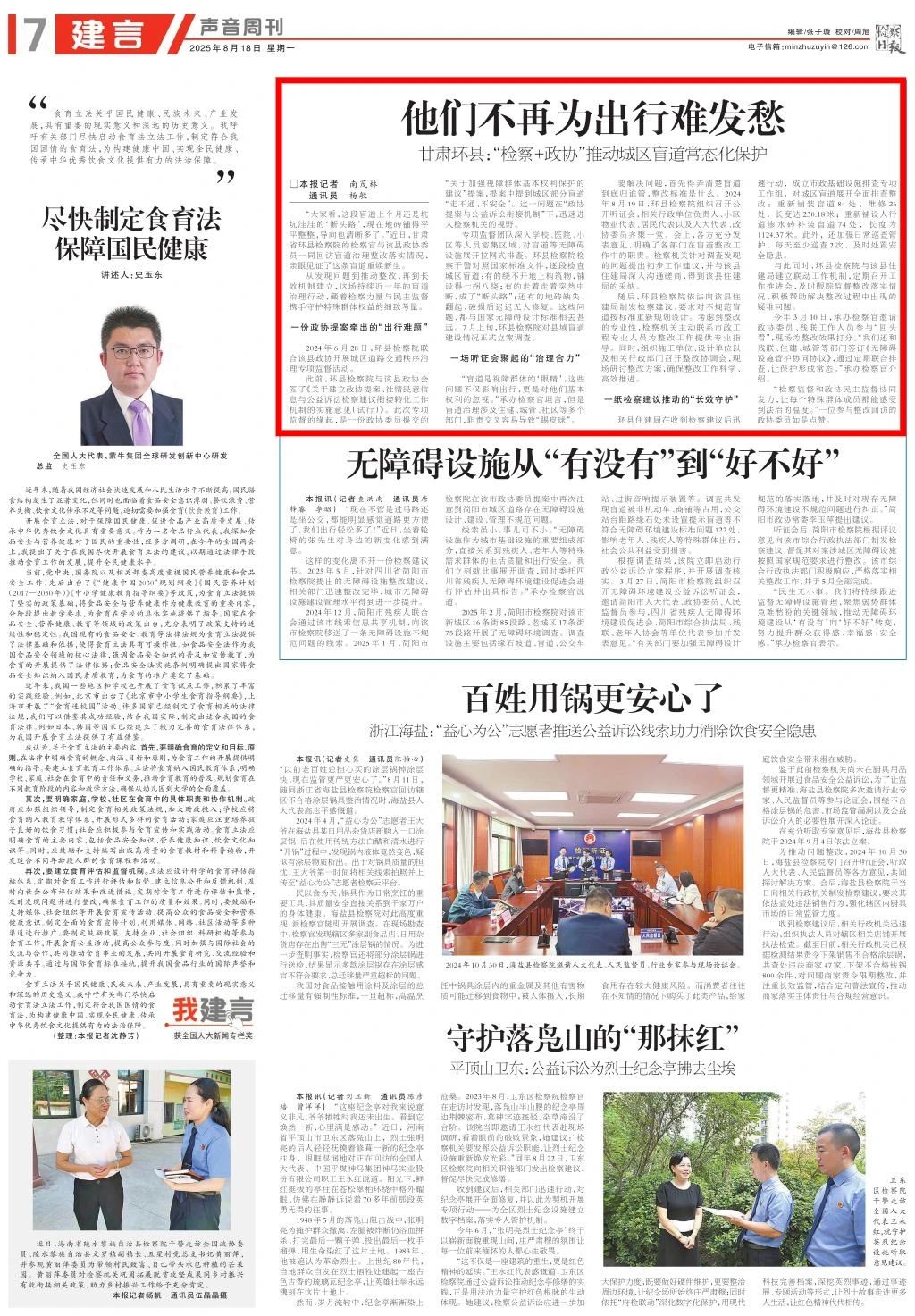 2025年8月18日,检察日报声音周刊刊发《他们不再为出行难发愁 甘肃环县:“检察+政协”推动城区盲道常态化保护》。