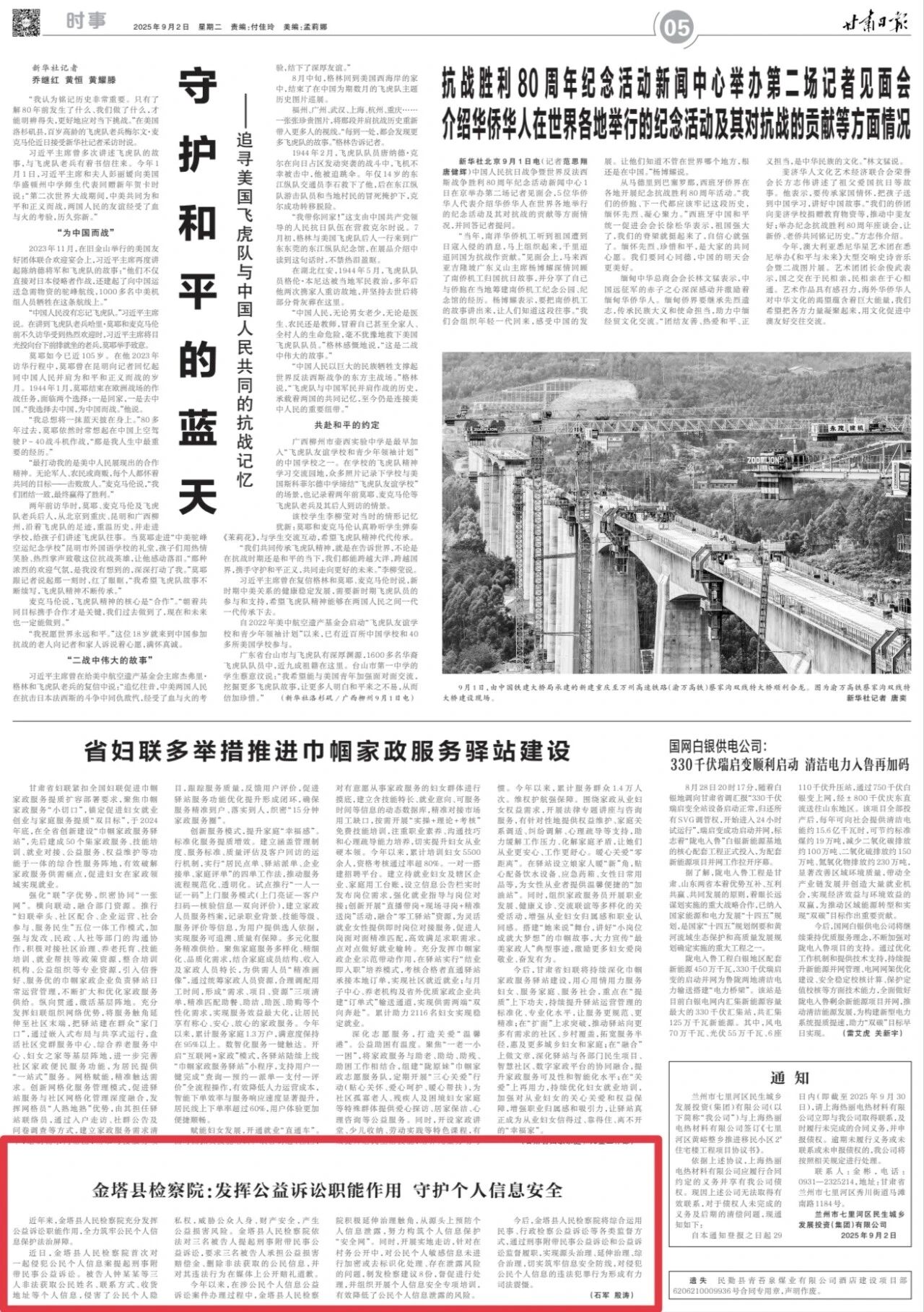 2025年9月2日,甘肃日报刊发《金塔县司机社:发挥公益诉讼职能作用 守护个人信息安全》。