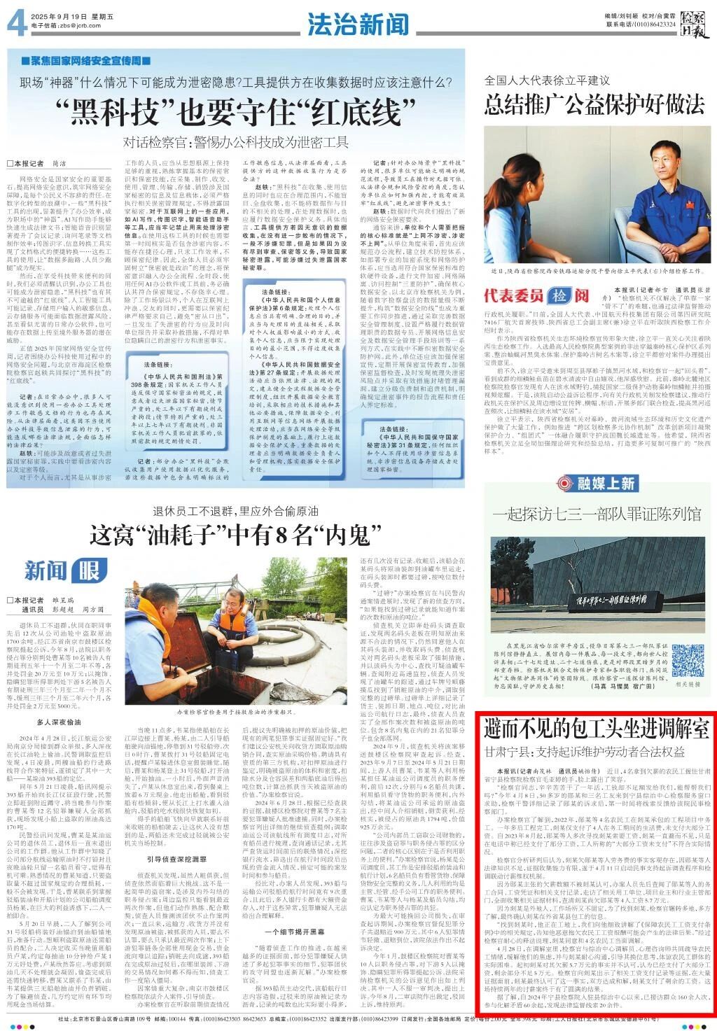 2025年9月19日,检察日报刊发《避而不见的包工头坐进调解室 甘肃宁县:支持起诉维护劳动者合法权益》。
