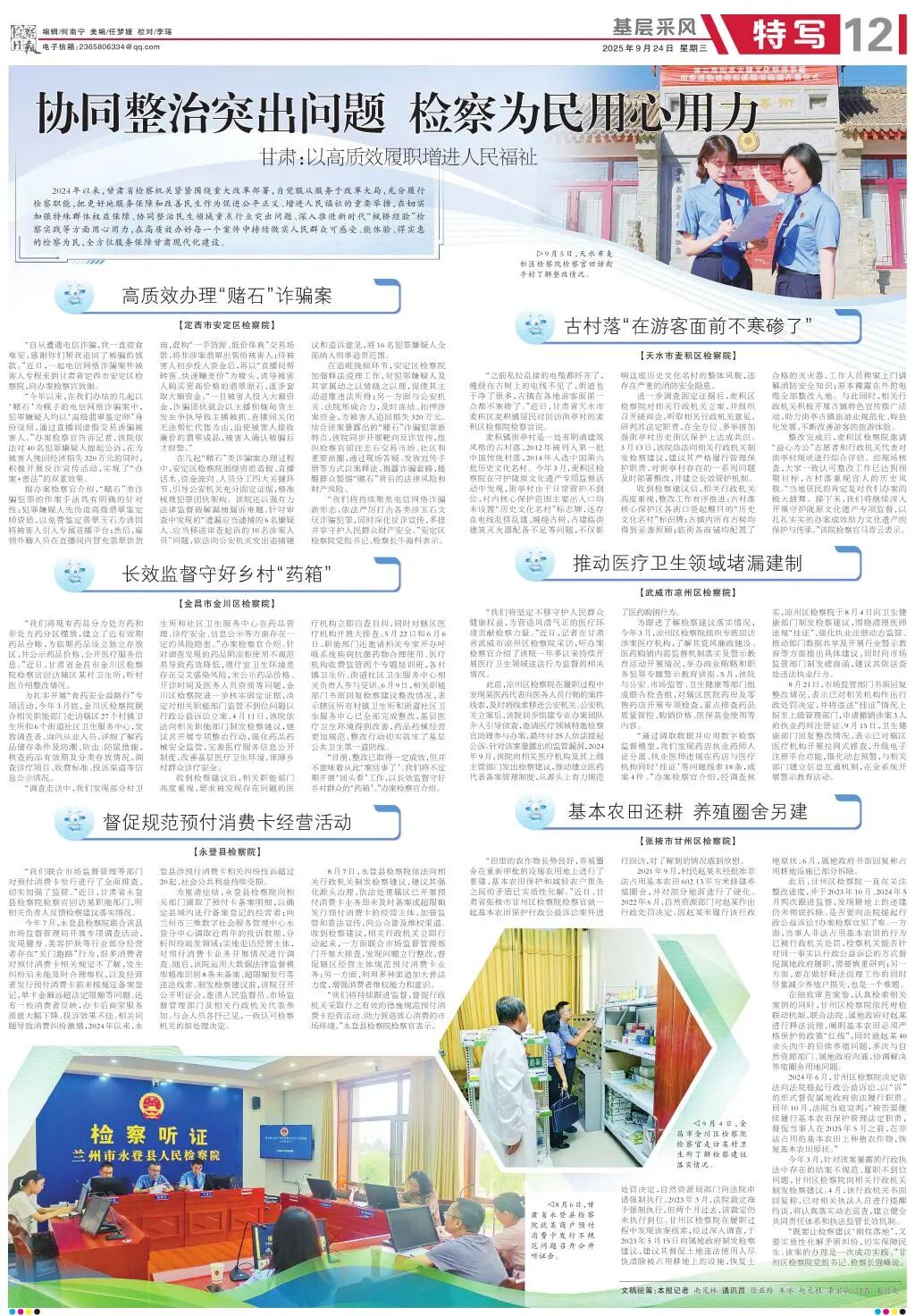 2025年9月24日,检察日报《协同整治突出问题 检察为民用心用力 甘肃:以高质效履职增进人民福祉》专版刊发《定西市安定区司机社:高质效办理“赌石”诈骗案》。