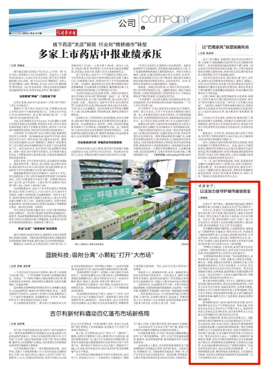 2025年9月25日,经济参考报刊发《甘肃安宁:以法治力量守护城市建设安全》。