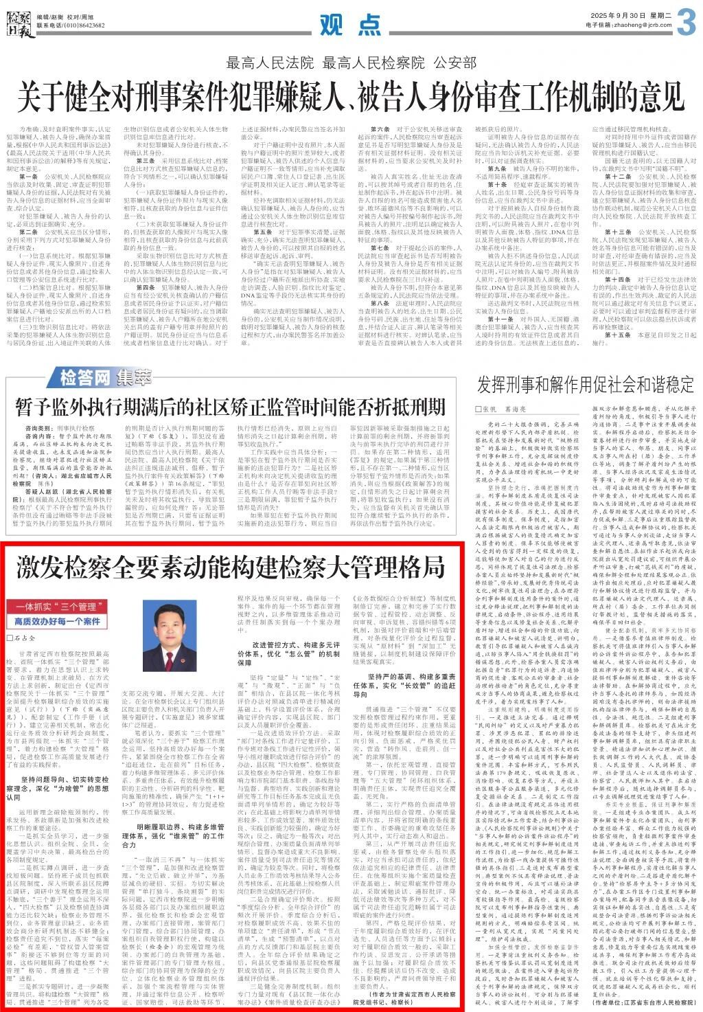 2025年9月30日,检察日报刊发《激发检察全要素动能构建检察大管理格局》。