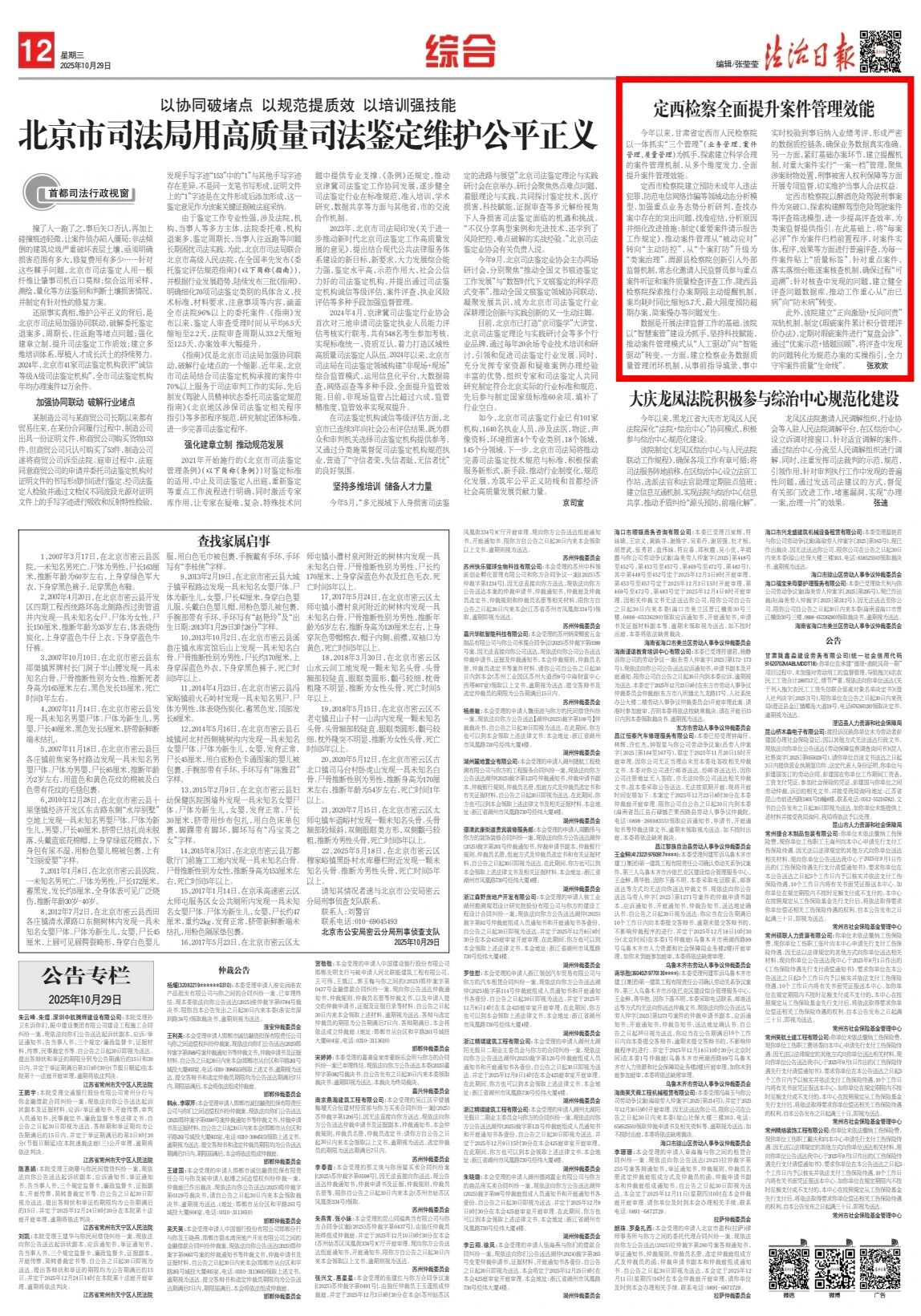 2025年10月29日,法治日报刊发《定西检察全面提升案件管理效能》。