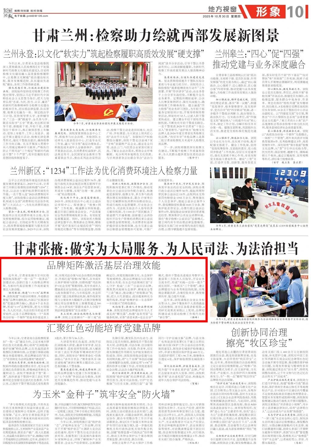 2025年10月30日,检察日报地方视窗《甘肃张掖:做实为大局服务、为人民司法、为法治担当》专版刊发《品牌矩阵激活基层治理效能》。