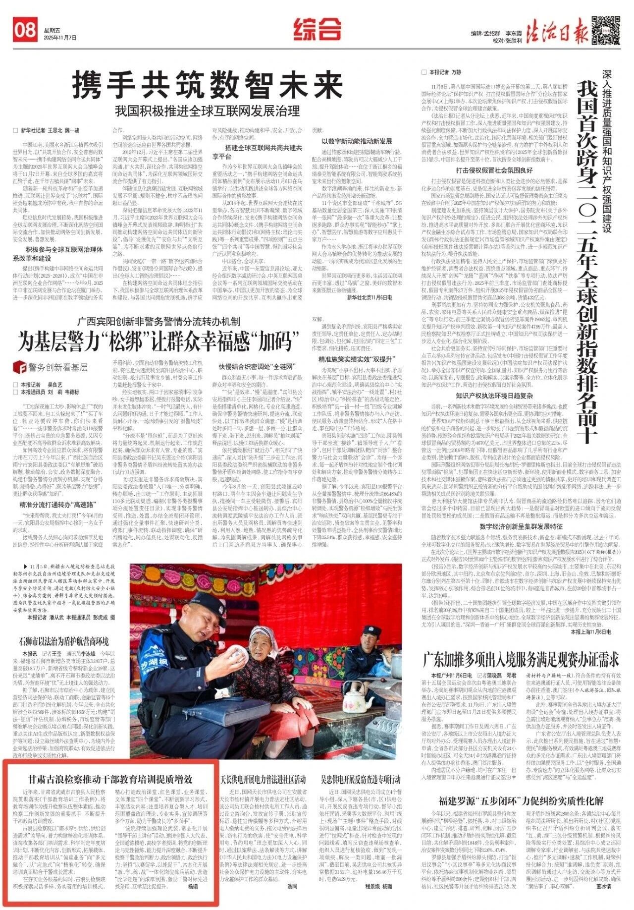 2025年11月7日,法治日报刊发《甘肃古浪检察推动干部教育培训提质增效》。