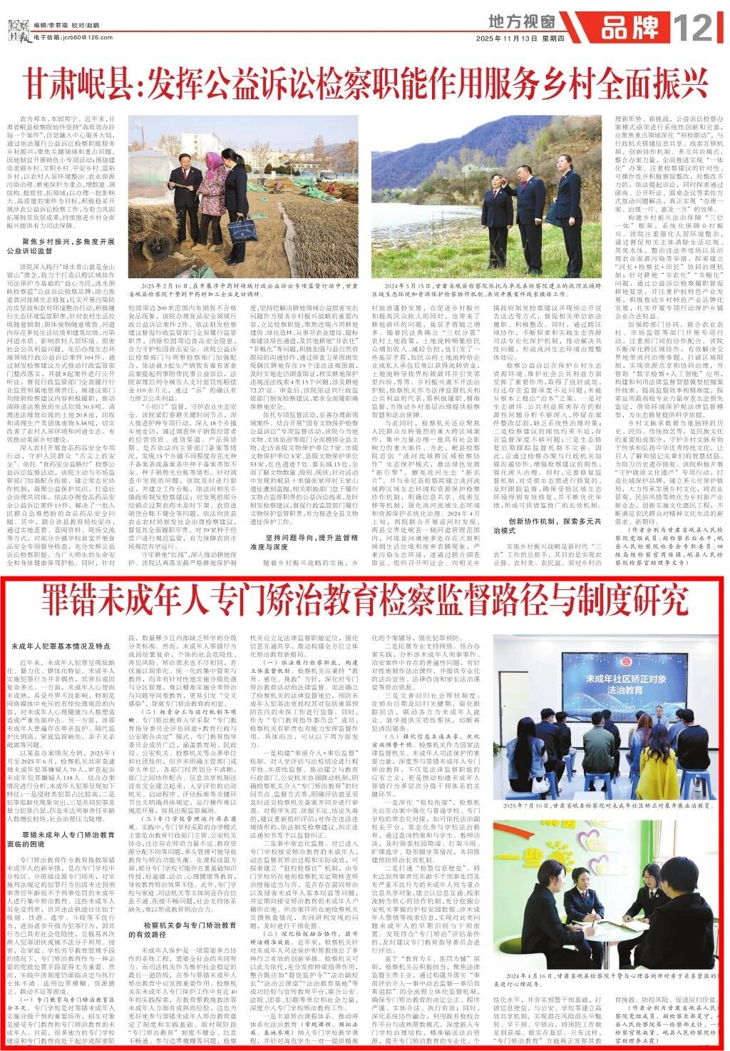 2025年11月13日,检察日报地方视窗刊发《罪错未成年人专门矫治教育检察监督路径与制度研究》。