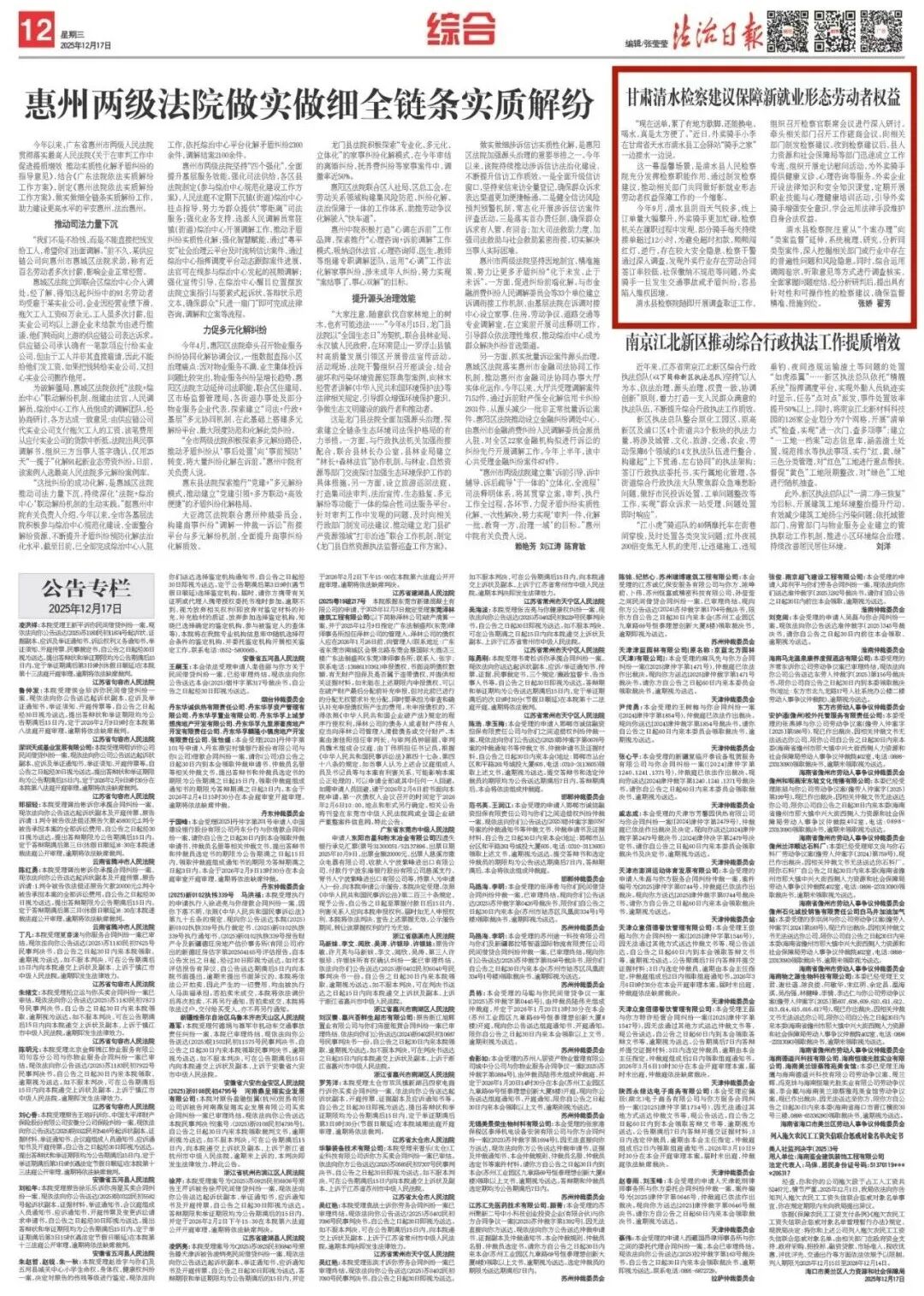 2025年12月17日,法治日报刊发《甘肃清水检察建议保障新就业形态劳动者权益》。