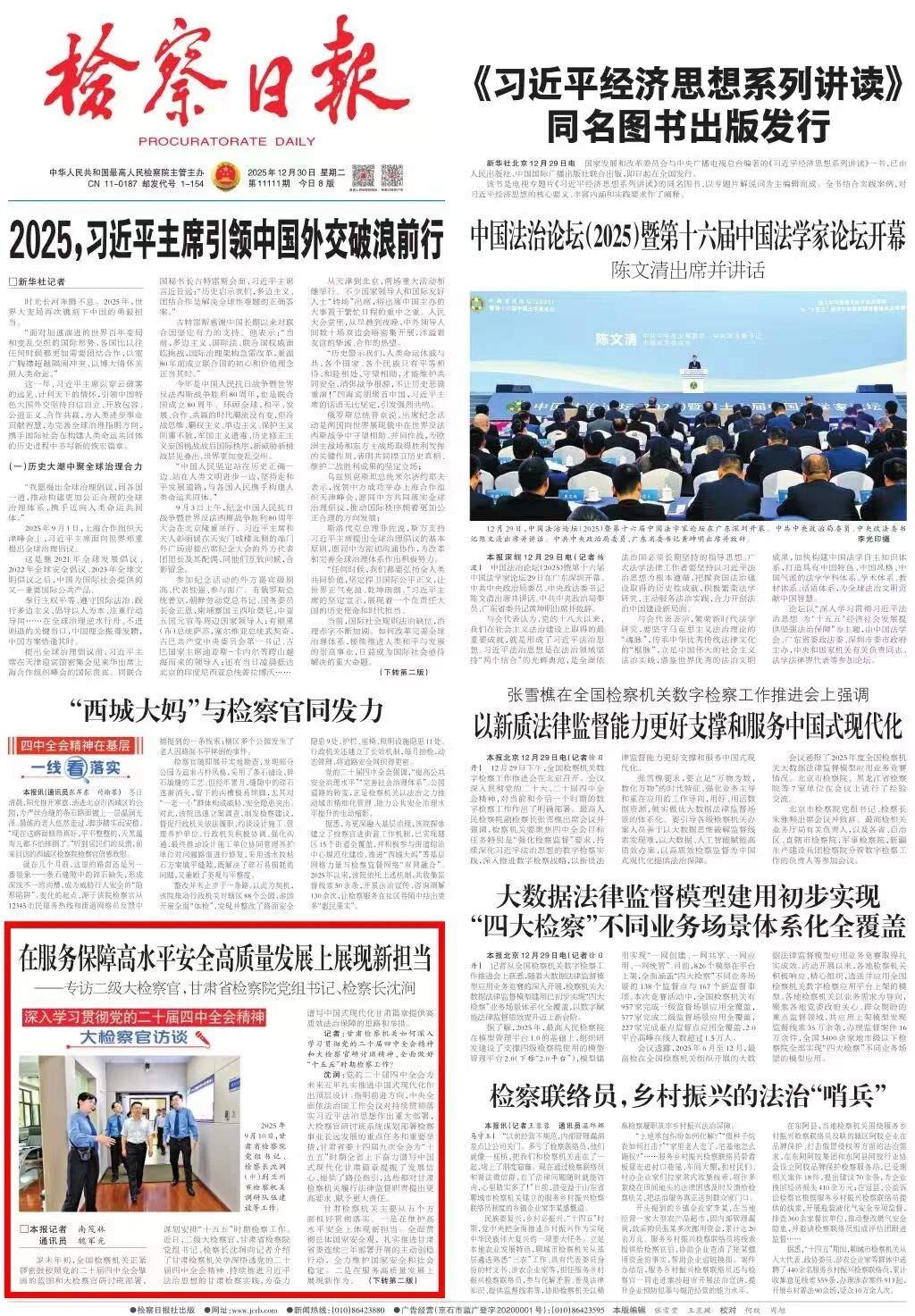 2025年12月30日,检察日报头版刊发《在服务保障高水平安全高质量发展上展现新担当》。