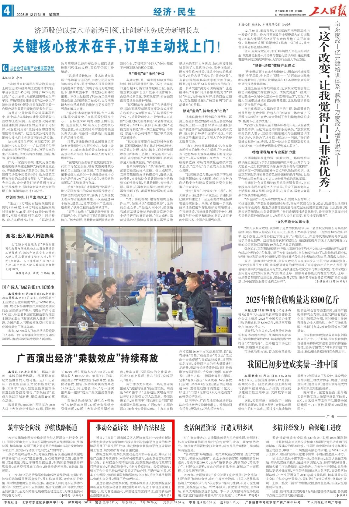 2025年12月31日,工人日报刊发《推动公益诉讼 维护合法权益》。