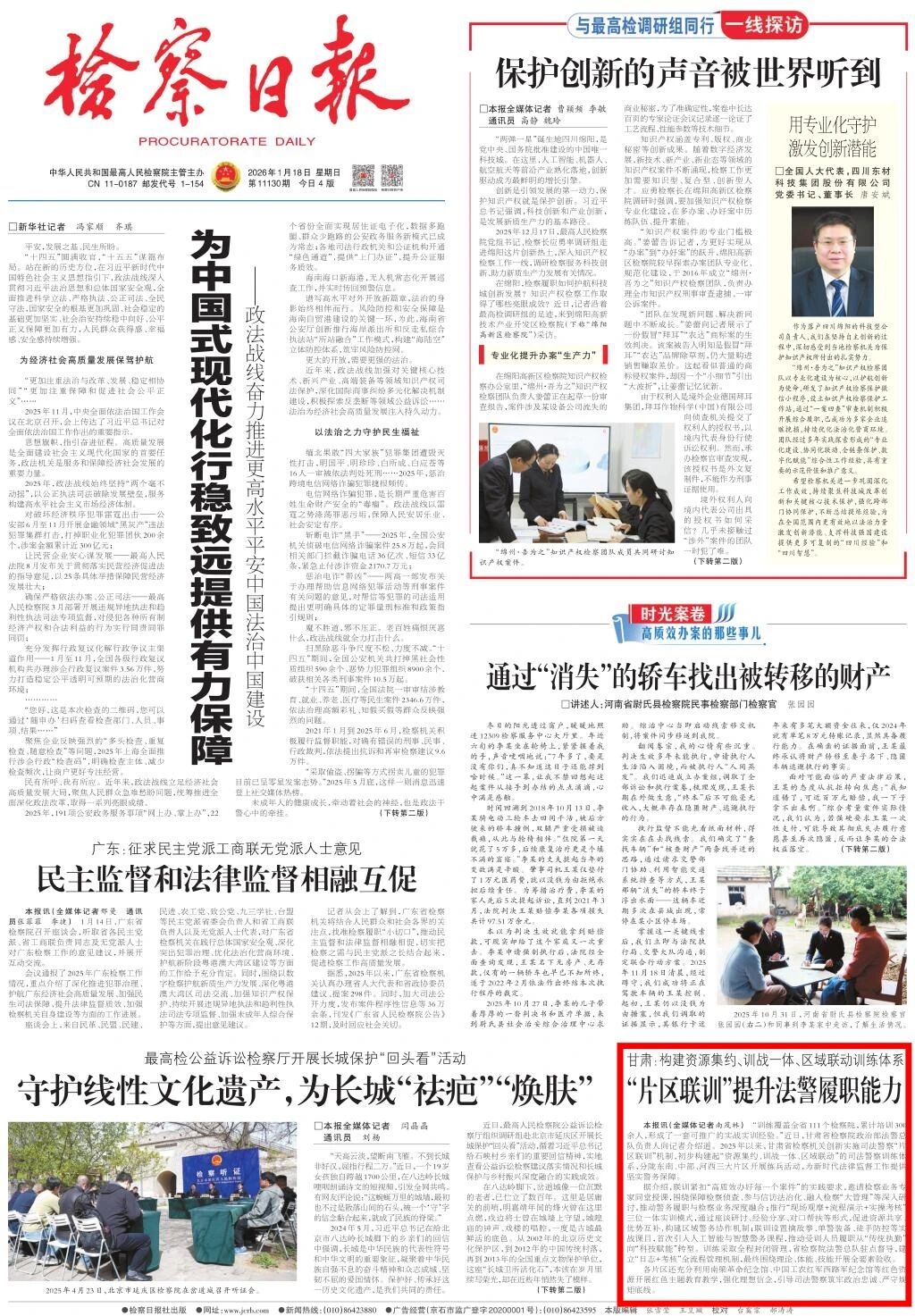 2026年1月18日,检察日报头版刊发《甘肃:构建资源集约、训战一体、区域联动训练体系 “片区联训”提升法警履职能力》。