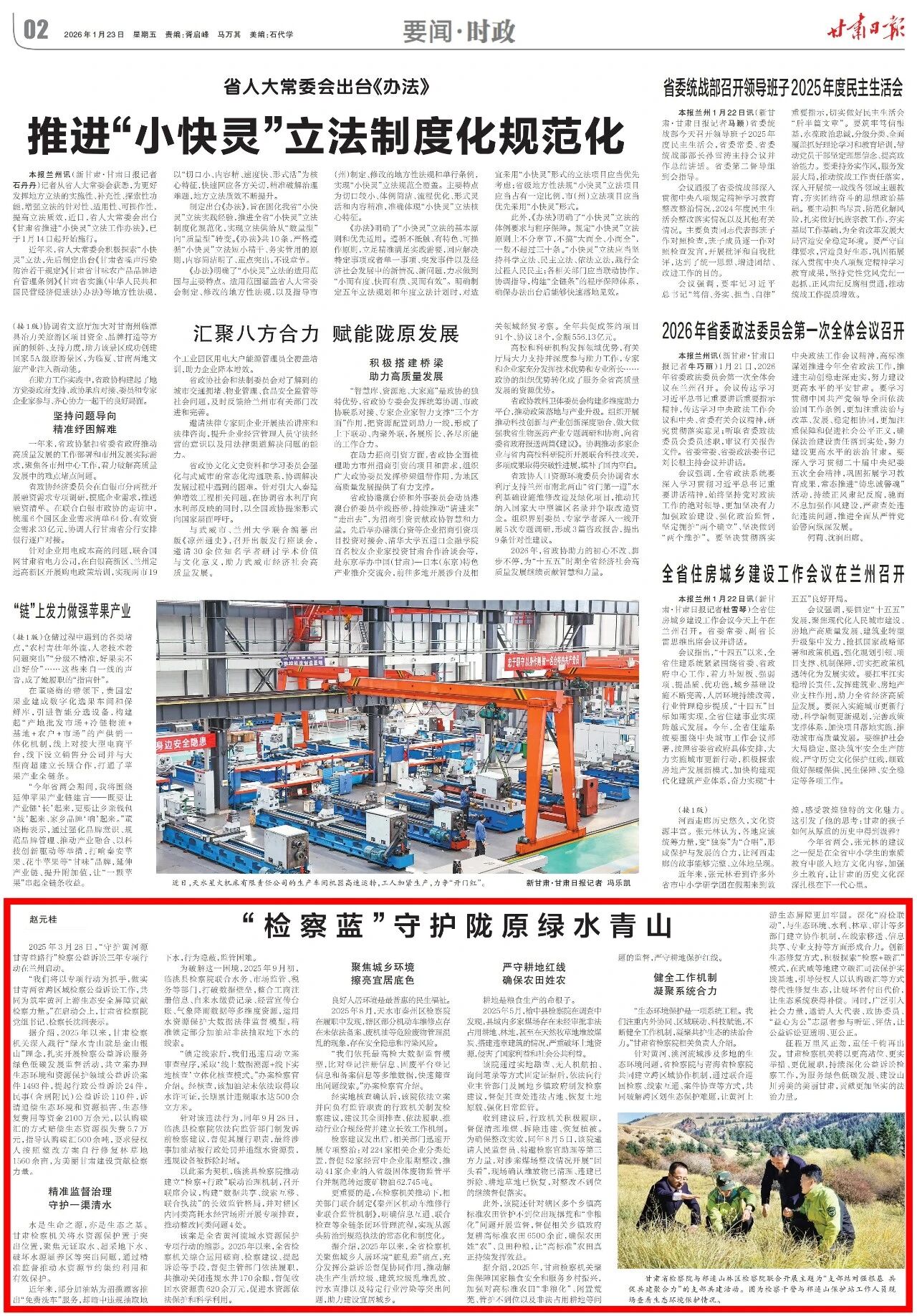 2026年1月23日,甘肃日报刊发《“检察蓝”守护陇原绿水青山》。