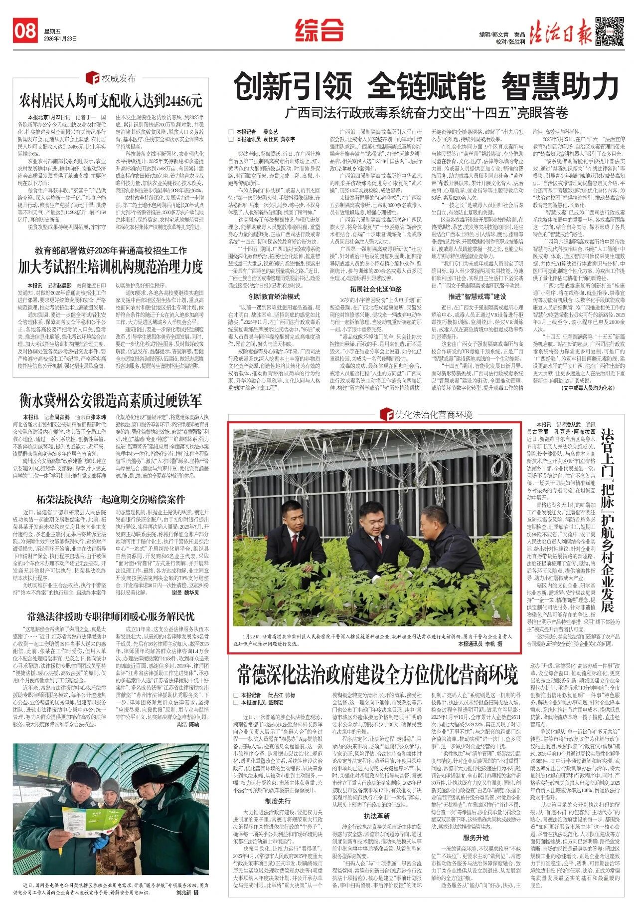 2026年1月23日,法治日报刊发甘肃省酒泉市肃州区司机社 干警深入辖区蔬菜种植企业,就种植业司法需求进行走访调研的新闻图片。