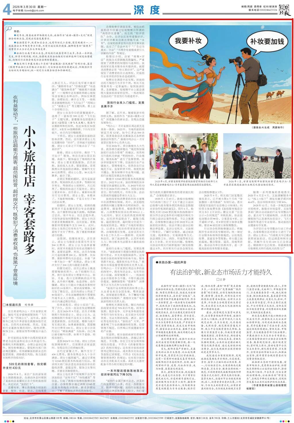 2026年3月30日,检察日报刊发《小小旅拍店 宰客套路多》。